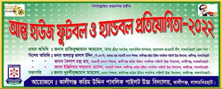 ছাত্র / ছাত্রীদের নিয়ে এক জমজমাট আন্ত হাউজ প্রতিযোগিতা হয়ে গেল করিম উদ্দিন পাবলিক পাইলট উচ্চ বিদ্যালয়ে। ধন্যবাদ জানাই বন্ধু ৯৬ জনাব রাকিবুজ্জামান আহমেদ সম্মানিত সাংগঠনিক সম্পাদক বাংলাদেশ আওয়ামেলিগ লালমনিরহাট জেলা শাখাকে আমাদের এই সুন্দর পরিবেশে সুন্দর পোষাকে প্রতিযোগিতা টি করে দেওয়ার জন্যে।সেই সাথে কৃতঙ্গতা প্রকাশ করছি অত্র প্রতিষ্ঠানের প্রধান শিক্ষক জনাব খুরশীদুজ্জামান আহমেদ স্যার কে সর্বাত্তক পরিশ্রম করে প্রতিযোগিতাটিকে জমজমাট করার জন্যে। আগামিতে আরো জমজমাট হউক সেই প্রত্যাসায়।
