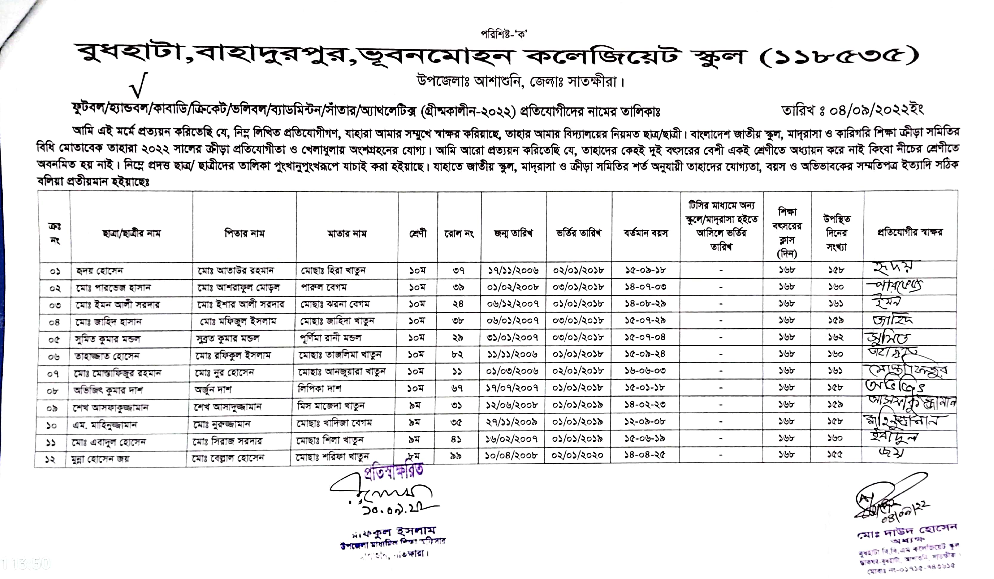 হ্যান্ডবল (বালক) দলের খেলোয়াড়দের নামের তালিকা-