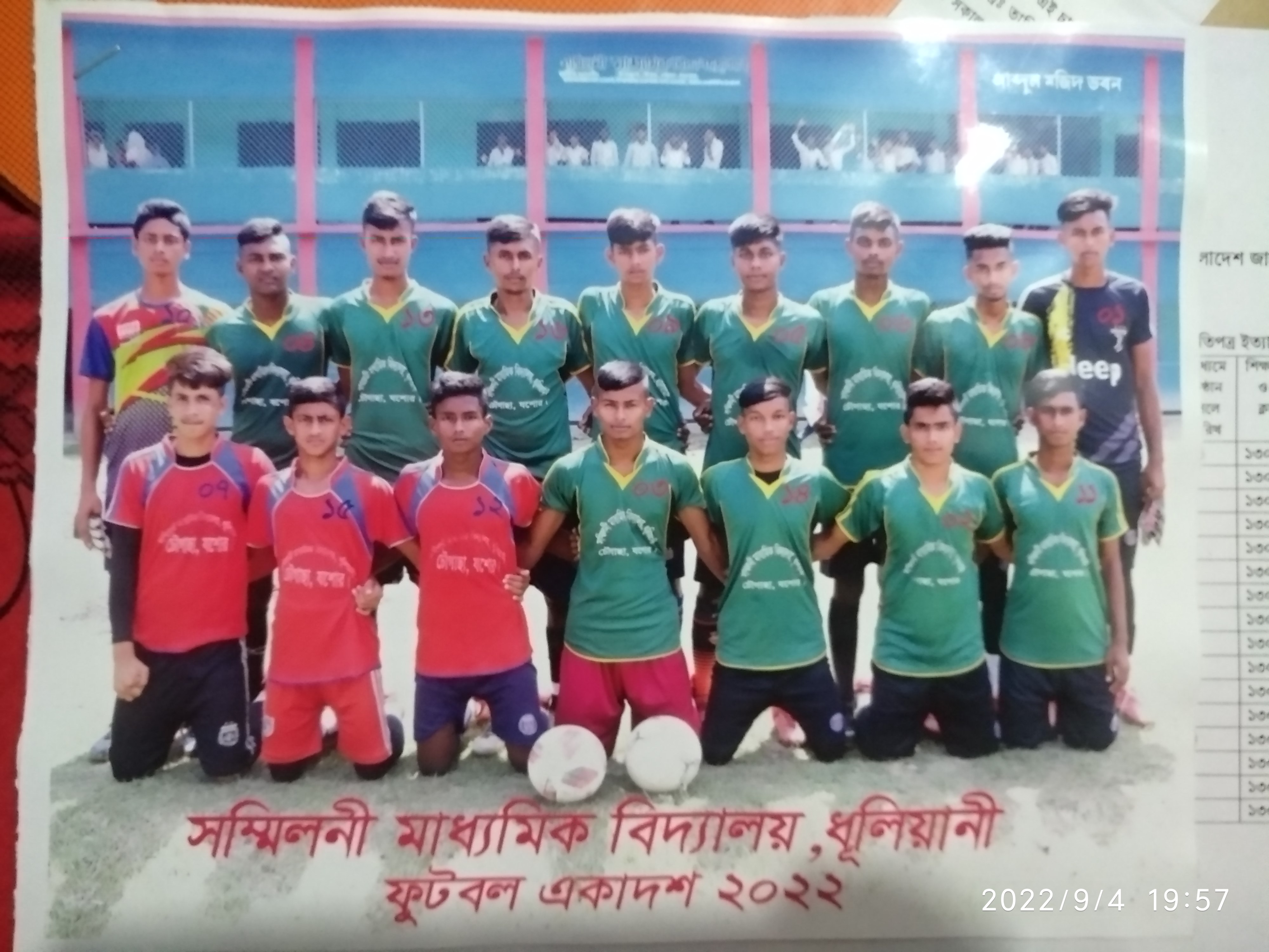 ৪৯ তম গ্রীষ্মকালীন ক্রিড়া প্রতিযোগিতার জন্য সম্মিলনী মাধ্যমিক বিদ্যালয়ের ফুটবল খেলোয়াড় সহকারী প্রধান শিক্ষক ও শরীর চর্চার শিক্ষক একসাথে।