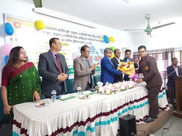 বাংলাদেশ জাতীয় স্কুল, মাদ্রাসা ও কারিগরি শিক্ষা ক্রীড়া সমিতি কর্তৃক আয়োজিত মাধ্যমিক স্কুল, মাদ্রাসা ও কারিগরি শিক্ষা প্রতিষ্ঠানের শারীরিক শিক্ষা শিক্ষকদের ১ম মাস্টার ট্রেইনার ২০২২খ্রীঃ এর সমাপনী ও সনদ বিতরণ অনুষ্ঠানে প্রধান অতিথি হিসেবে উপস্থিত ছিলেন প্রফেসর মোঃ শাহেদুল খবির চৌধুরী পরিচালক ( কলেজ ও প্রশাসন) মাধ্যমিক ও উচ্চ শিক্ষা অধিদপ্তর বাংলাদেশ, ঢাকা।